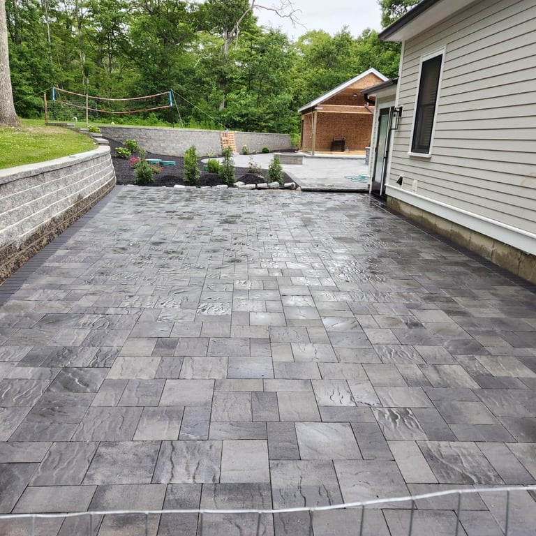 Stamped Concrete is a very durable option. It may be more cost effective than other options. Lasts over time. Can increase home value by up to 15%
